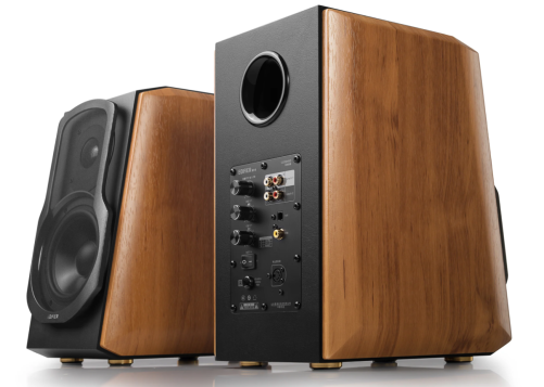 Edifier S1000MKIIHi-Res Audio Active 2.0 Bluetooth Bookshelf Speaker Set - Brown. Aluminium bass speaker for surge and wave bass, pure sound with advanced titanium dome tweeter. Designed with classic wooden side panels, the S1000 MKII is angled to ensure front-facing drivers positioned for optimum performance without compromise.